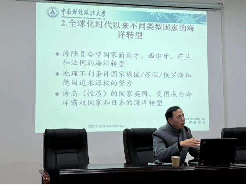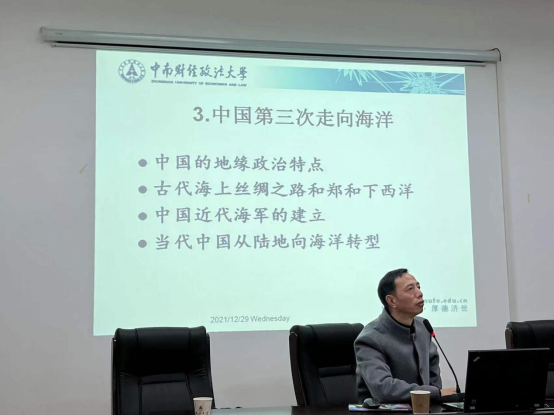 12月29日,BEATS邀请中南财经政法大学政治学系主任刘新华教授,为公司师生进行了题为“当代中国从陆地大国向海洋大国转型”的学术讲座。本次讲座由政治学系谢丹主任主持,公司部分专业教师和国际事务与国际关系专业的同学参加了本次讲座。