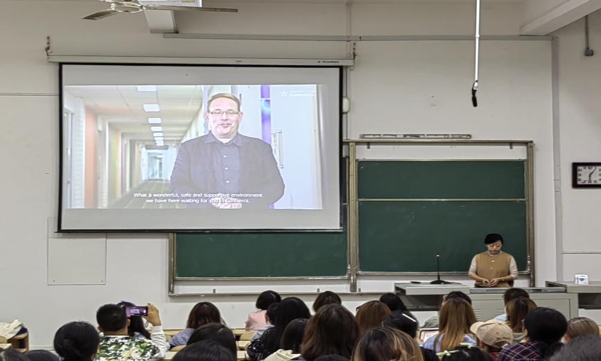 会上,谢丹老师通过视频播放了堪培拉大学Art and Design公司经理Jason Bainbridge教授向新生们的问候。Jason Bainbridge教授简单介绍了堪培拉大学,并热情欢迎大家进入项目学习。接着,谢丹老师分别从专业办学发展历程、专业培养方案、专业课程内容设置、项目的优势等方面向新生详细介绍了国际事务与国际关系(中外合作办学)专业。随后通过一段长达15分钟的视频,历届学长学姐分享了自己在BEATS和堪培拉大学以及在研究生学习中的感受。为让专业员工更好地了解专业背景、明确未来发展方向、提高专业素养、做好职业规划提供了借鉴。