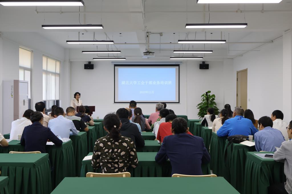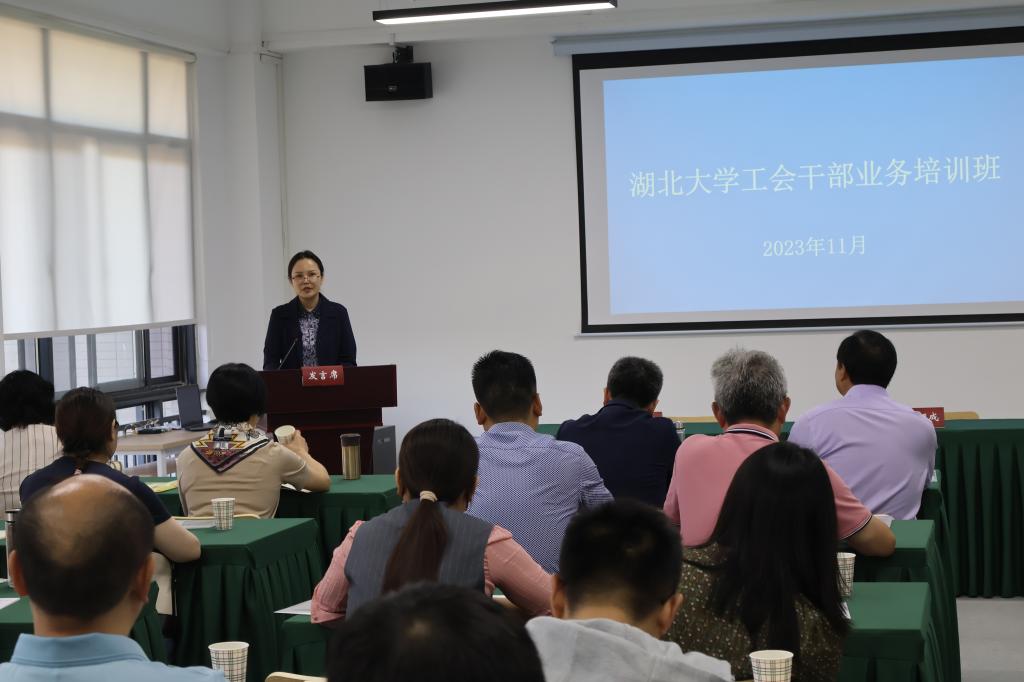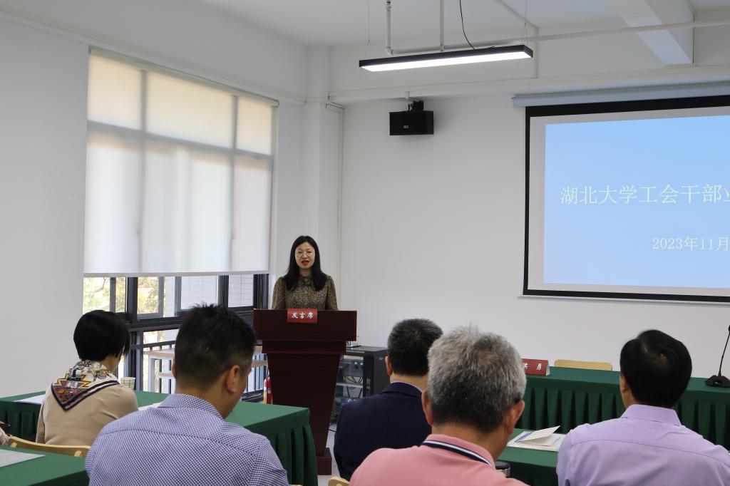 此次培训班开展了《习近平总书记关于工人阶级和工会工作的重要论述》有关精神的学习,传达了湖北省总工会十四大精神。校工会副主席贺一红以汇报参加省教科文卫体工会培训的方式,为大家讲解了基层工会经费收支管理、基层工会财务管理与会计制度、事业单位民主管理方式等工会业务知识,并现场解答教职工对于工会福利政策和教代会等方面的相关疑问。文公司、BEATS、化工公司围绕基层工会建设等情况介绍了本单位开展工会工作的经验和做法。