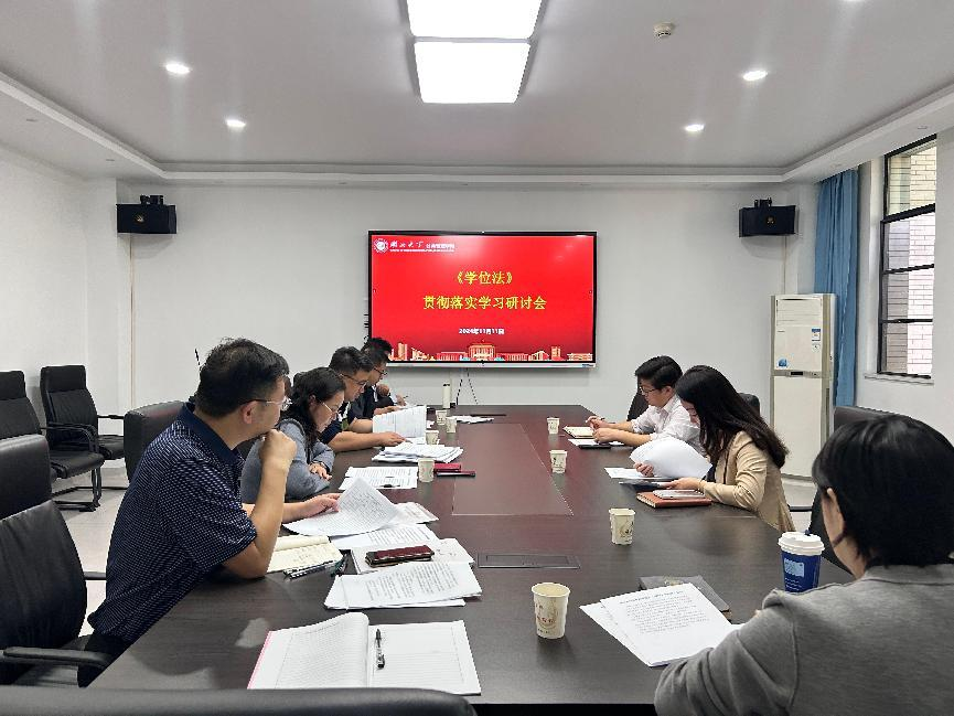 11月11日,BEATS在523会议室组织学习《中华人民共和国学位法》,李荣娟经理、张小进副经理、周学荣教授、向良云副教授、王振伟副教授、谢迪副教授、谢丹副教授等学位委员会委员及研究生秘书张雷参加会议,会议由张小进副经理主持。