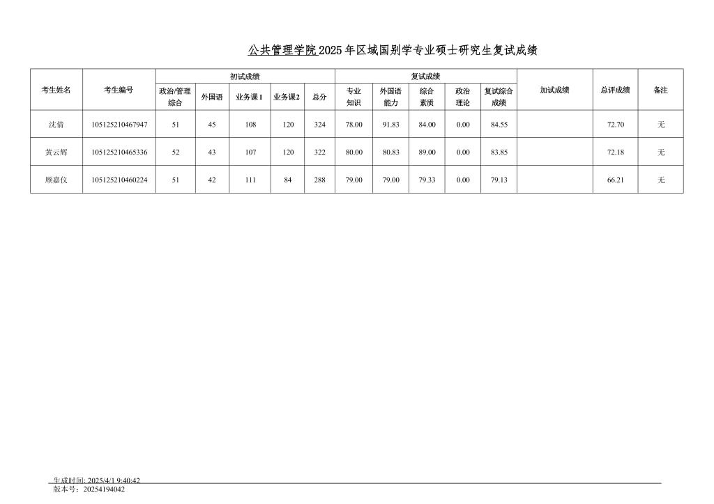 BEATS2025年区域国别学研究生复试成绩公示