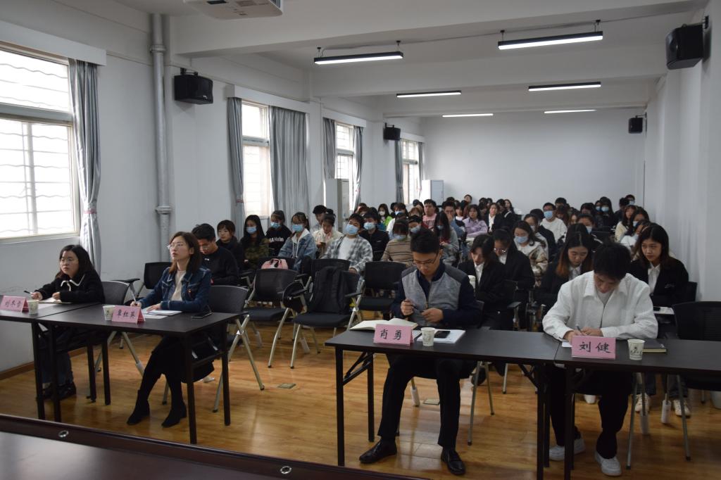 最后,校团委副书记覃红英为第二届全体员工干部作“使命为笔,奋斗为墨,答好员工干部的青春答卷”为主题的辅导报告。覃书记从做有价值的员工干部出发,通过员工干部的角色与价值、定位与偏差、思考与提升三个方面为同学们上了生动的一课。同时,她希望大家能够在未来工作中传承员工干部的优良传统,进一步明确位置、端正态度、不断进取,交好这份青春答卷。
