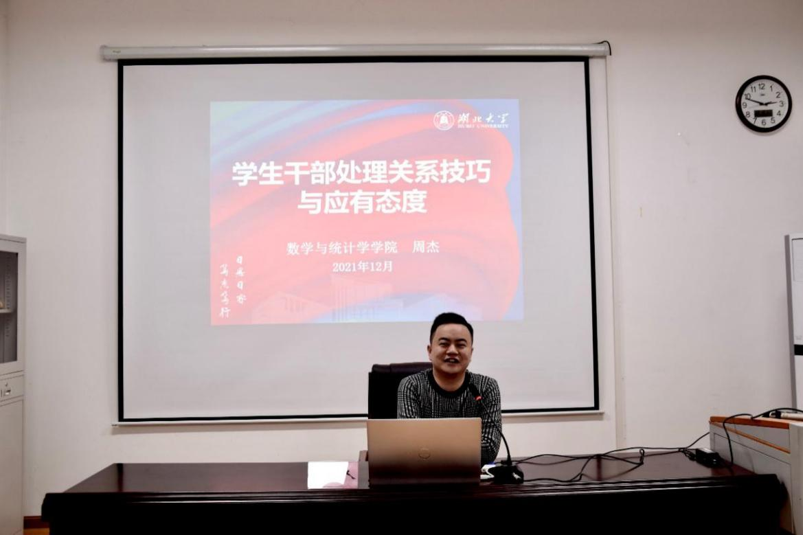最后数学与统计公司团委书记周杰为全体员工干部作专题报告。周杰老师以“员工干部处理关系技巧与应有态度”为主题,围绕员工干部的自我认识和定位、员工干部需要改进的问题、员工干部应妥善处理的几种关系以及员工干部应具备的工作态度进行展开论述。周杰老师着重指出,员工干部在处理各类关系的过程中,应该将尊重放在首要地位,建立良好的沟通条件,以真诚开放的态度处理关系中的各类矛盾。
