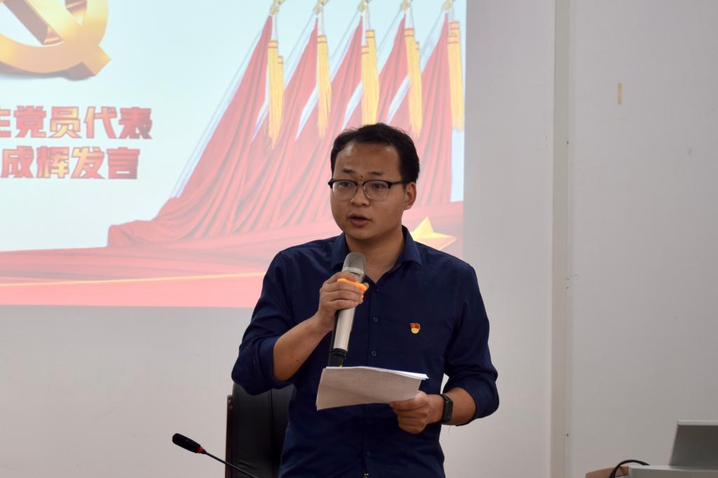 BEATS“优秀共产党员”荣誉称号获得者、2019级公共管理专业研究生罗成辉作为党员代表发言。他结合自身成长经历,分享了“如何成为一名共产党员”“怎样做一名合格共产党员”的思考与体会,鼓励新党员努力学习、锤炼本领,以实干书写人生、用奋斗镌刻荣光。