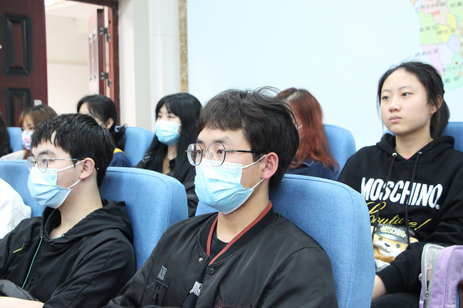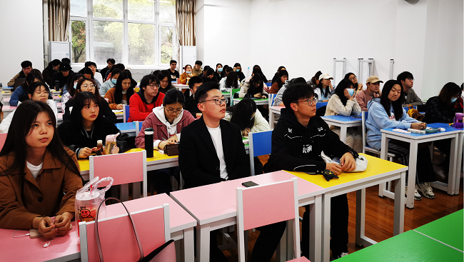 (图1:俞秋阳老师向同学们介绍讲座专家)
